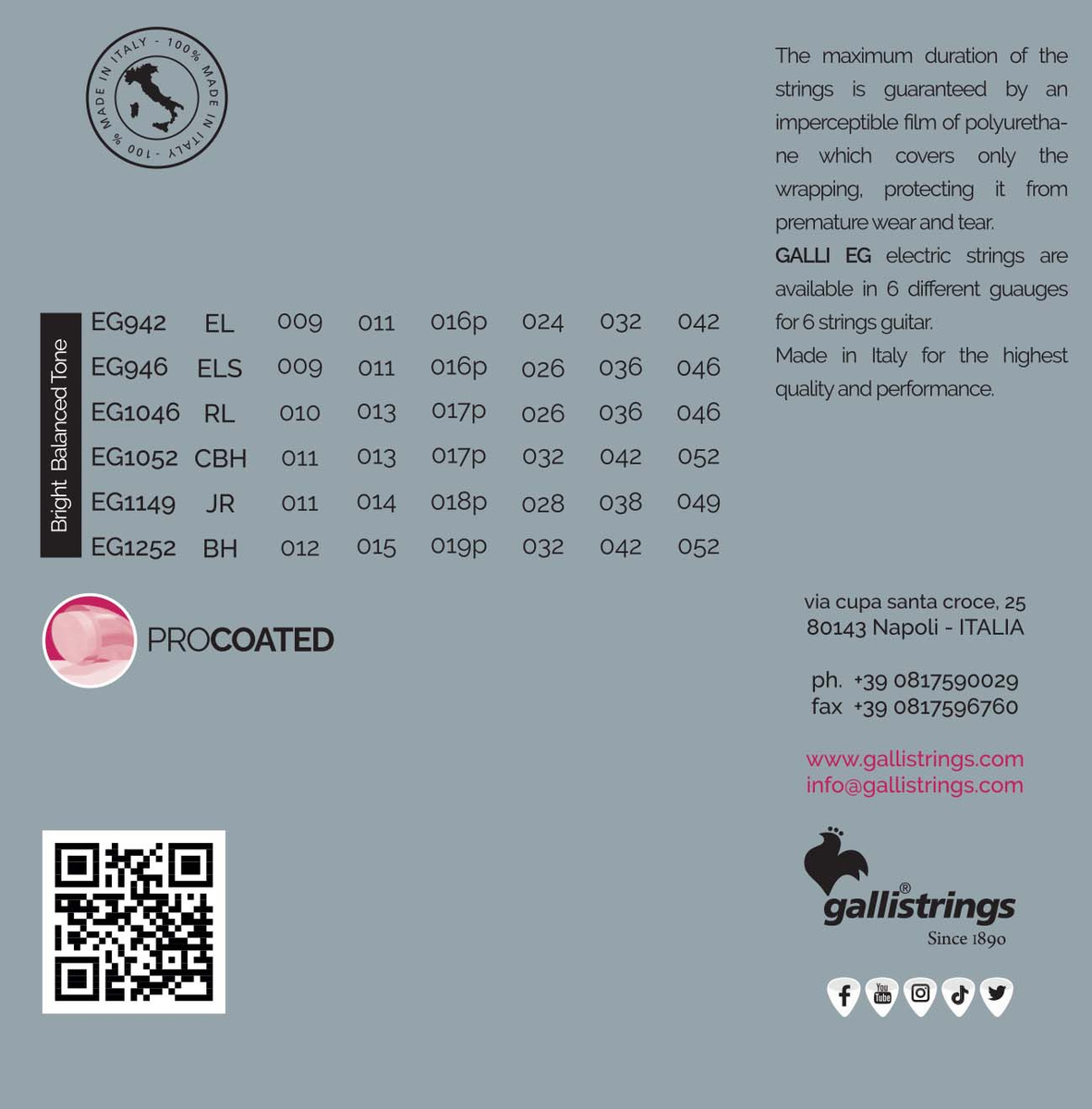 via Cupa Santa Croce 25Kod pocztowy: 80143Miasto: NapoliKraj: WłochyAdres email: amministrazione@gallistrings.com
