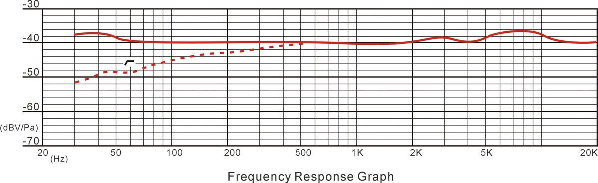 - Czułość: -38dB±2dB(0dB=1V/Pa at 1kHz)