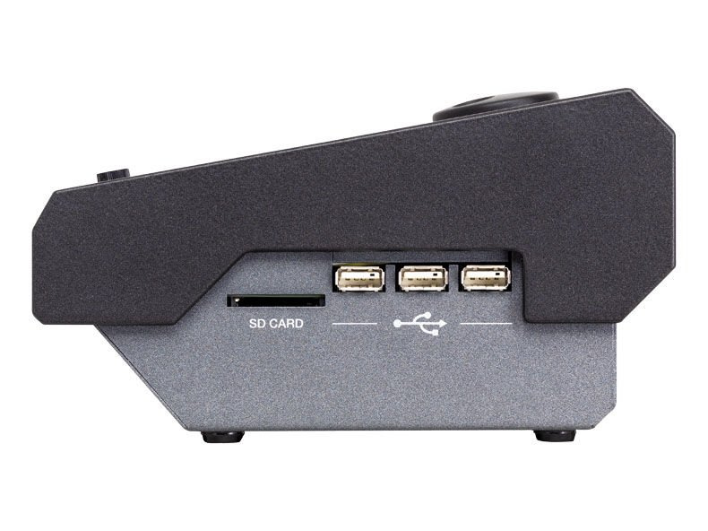 - Media: wbudowana pamięć SSD o pojemności 16 GB, 3 gniazda pamięci przenośnych USB HOST oraz 1 USB DEVICE, gniazdo karty SD.