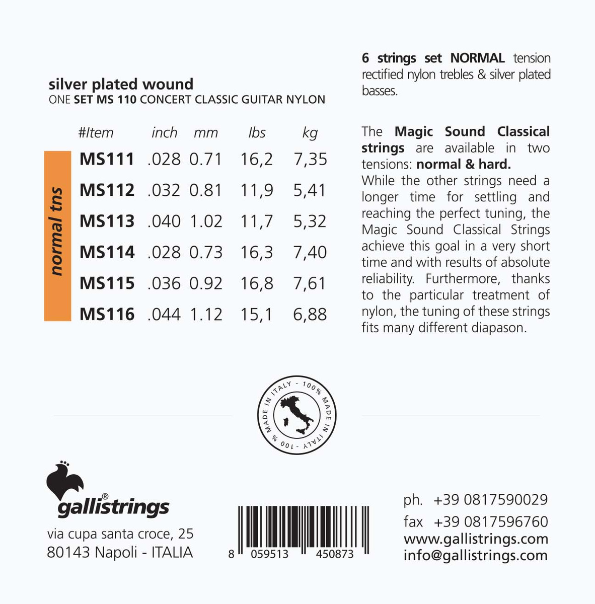 via Cupa Santa Croce 25Kod pocztowy: 80143Miasto: NapoliKraj: WłochyAdres email: amministrazione@gallistrings.com