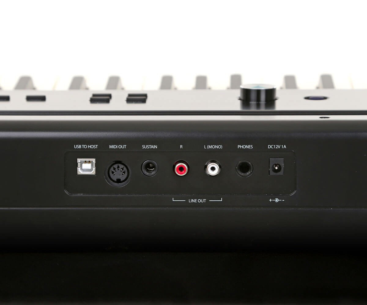 • Wejścia: USB, MIDI Out, pedału Sustain, Line Out L/R, słuchawkowe 1/4", DC