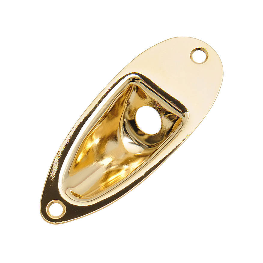 Zgodna z klasyczną wersją płytka w kolorze złotym do montażu w gitarach typu stratocaster. Wkręty montażowe oraz gniazdo jack do kupienia oddzielnie.