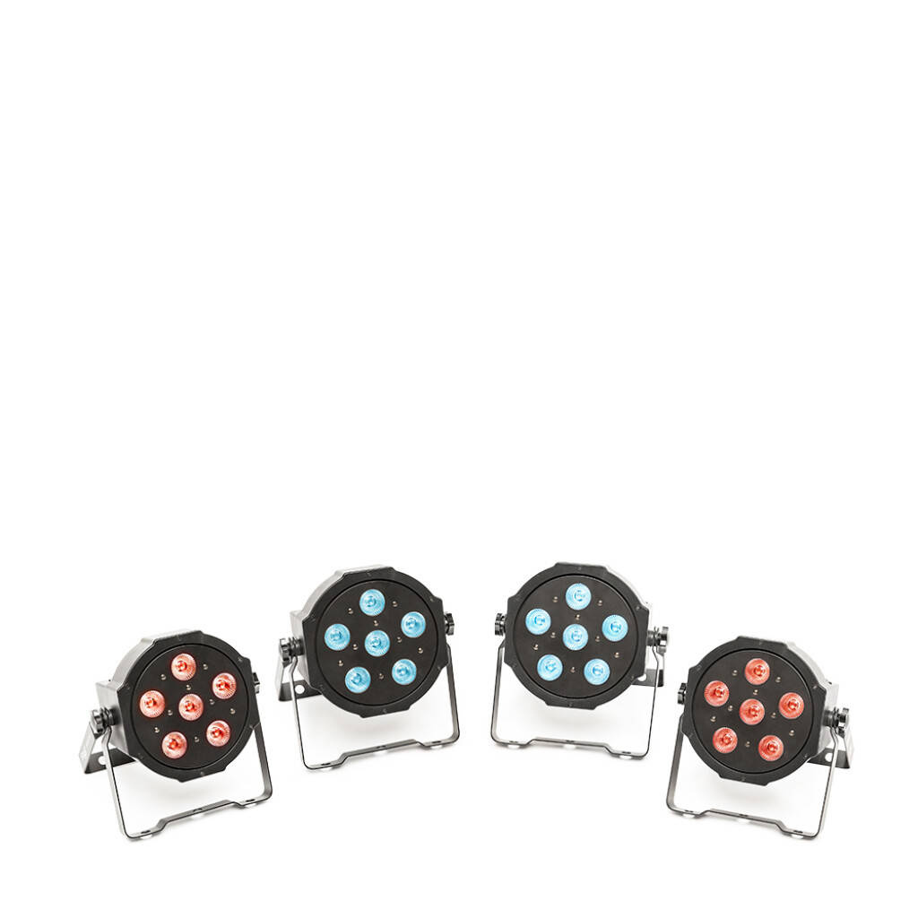 Zestaw składa się z: 1 x Sterownik LightTheme™ Remote, 4 x światła Ecopar 6 LT, 1 x torba LightTheme™, 4 x kabel DMX