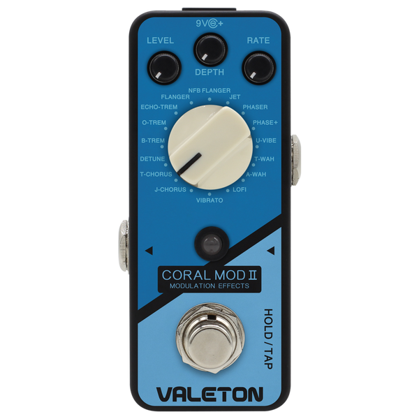 Nowa generacja efektów z serii Valeton Coral cechuje się 24-bitową konwersją sygnału, co zapewnia lepszą jakość brzmienia, mniej zakłóceń i nowe funkcje. Ten wszechstronny efekt modulacyjny posiada aż 16 efektów dla każdego gatunku muzycznego. Dodatkowo producent umieścił w nim funkcję Tap Tempo.
