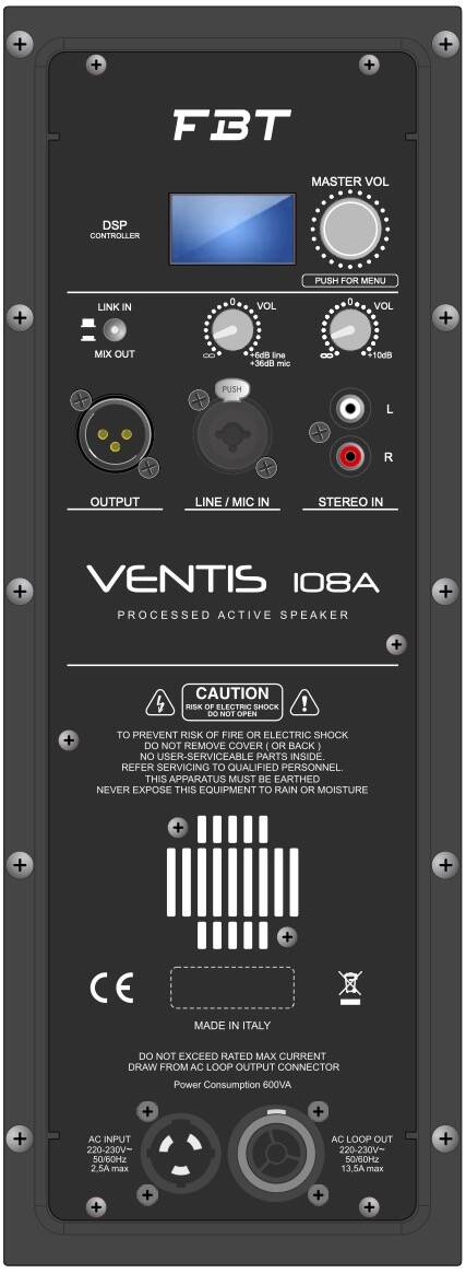 VENTIS oferuje 6 presetów dostarczających szeroką gamę zastosowań stworzonych przez inżynierów FBT. Użyte w kolumnach potężne procesory sygnałowe zapewniają niezawodność przy jednoczesnym eliminowaniu szumów na presetach.