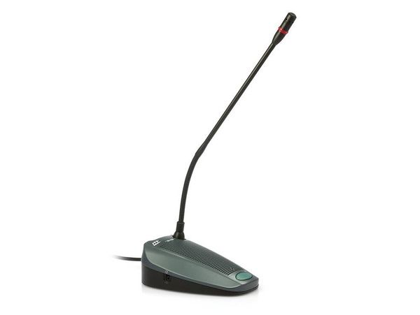 Część systemu konferencyjnego CS-1. Mikrofon CS-1 DU umożliwia uczestnikom uczestniczenie w dyskusji poprzez mówienie przez mikrofon sterowany przyciskiem ON/OFF, oraz słuchanie dyskusji przez wewnętrzny głośnik i zewnętrzne słuchawki.