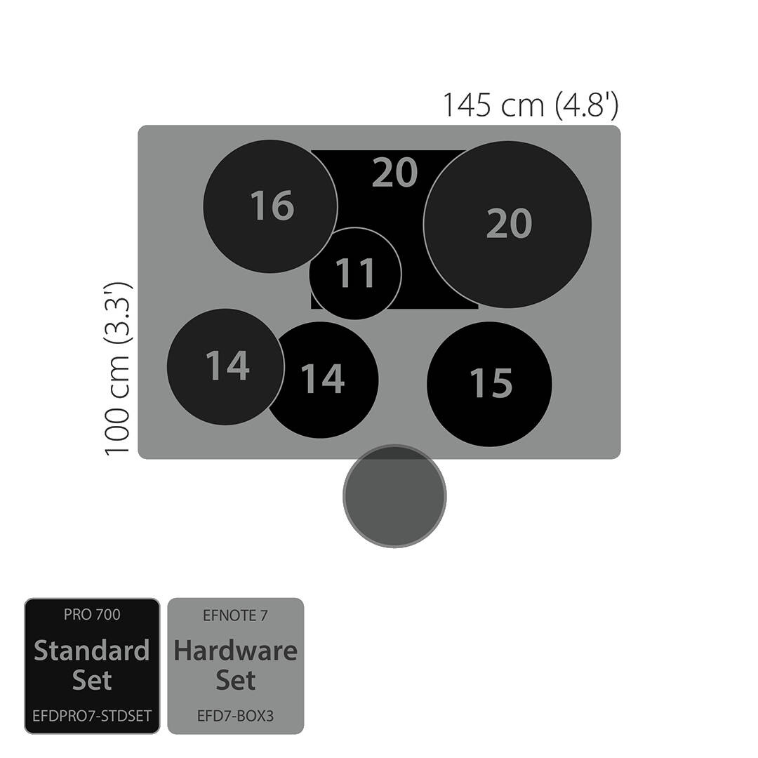 EFNOTE oferuje PRO w dwóch podstawowych liniach. Mniejsza seria 500 zawiera pad bębna basowego o wymiarach 16 x 12 cali stanowiący centralny element każdego zestawu, któremu towarzyszy werbel 12 x 5 cali. Podstawowe podkładki na tomy obejmują pad 10 x 7" i 12 x 12". Większa seria 700 oferuje bęben basowy 20 x 15" i werbel 14 x 5,5" jako podstawę.