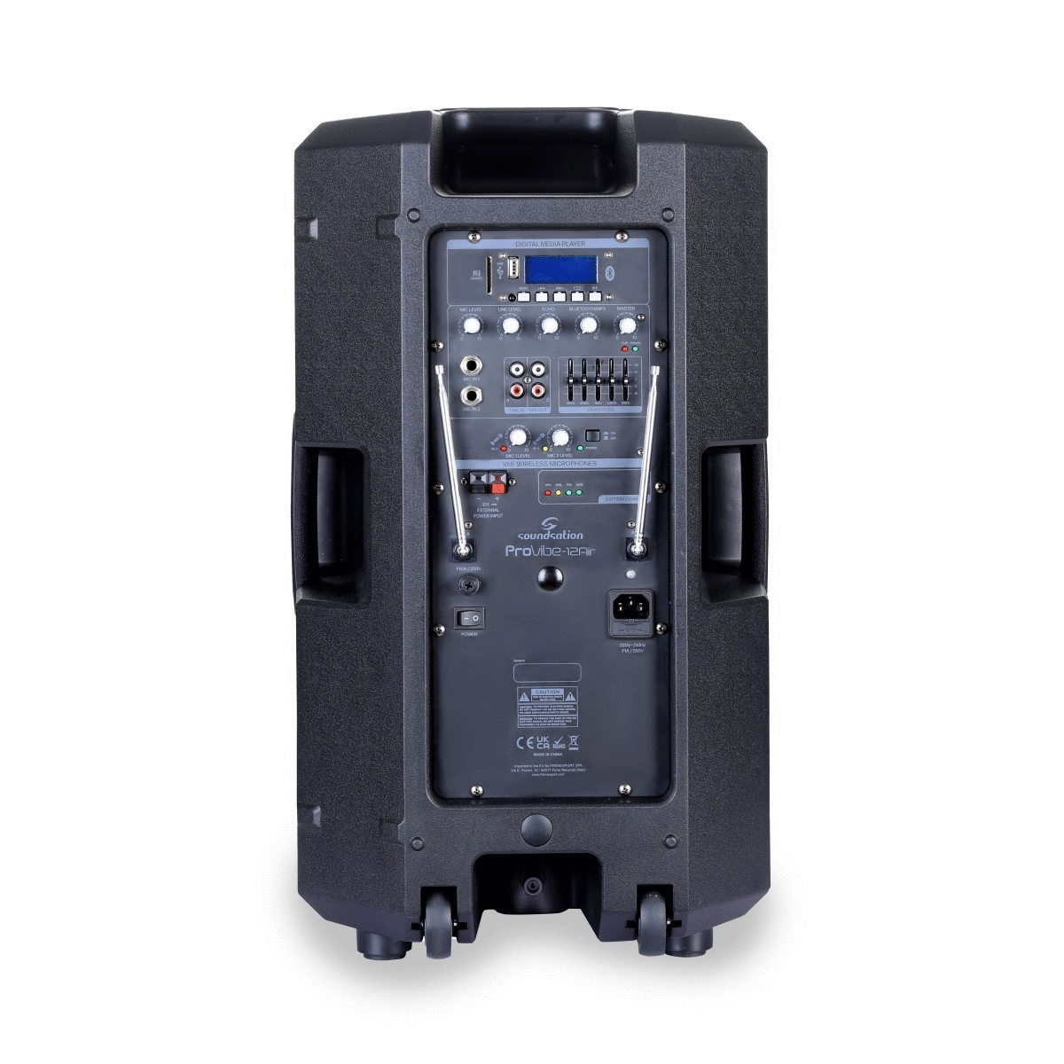 - Typ głośnika: Przenośny system PA 12" 2-drożny z akumulatorem, wózkiem i aplikacją mobilną