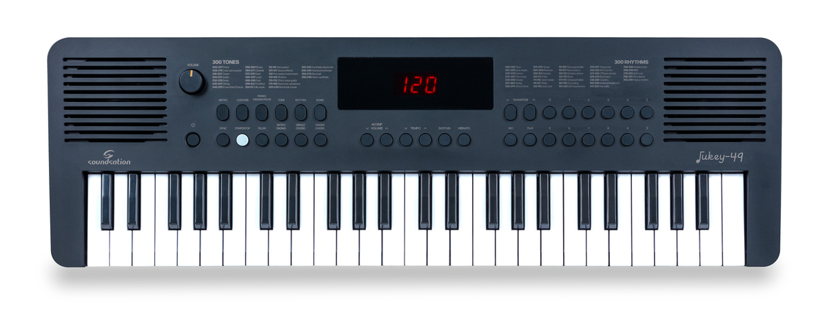 Keyboard JUKEY-49 oferuje szeroki wybór wysokiej jakości brzmień, rytmów i zawartości muzycznej, które umożliwiają grę i odkrywanie niezliczonych gatunków muzycznych. Funkcja automatycznego rozpoznawania i zmiany akordów sprawia, że korzystanie z muzycznego akompaniamentu jest proste, nawet dla początkujących. Keyboard ten został wyposażony w funkcje, które zazwyczaj występują w droższych instrumentach, takie jak REC i PLAY. Jego funkcjonalność, wszechstronność, kompaktowe wymiary oraz możliwość zasilania na baterie lub za pomocą dołączonego Power Banku czynią go doskonałym narzędziem do nauki i wykorzystania w szkołach.