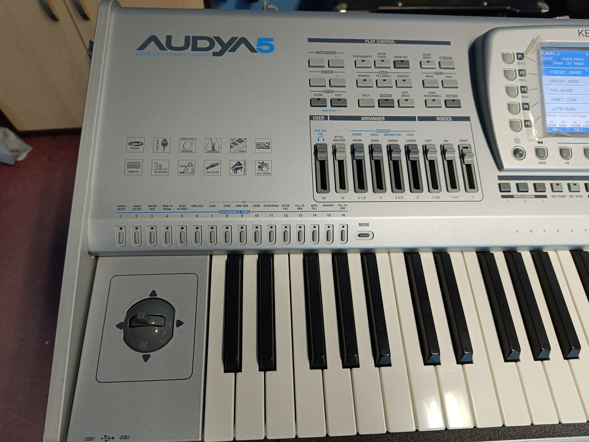- Audya 5 to profesjonalny, zaawansowany keyboard z akompaniamentami audio i harmonizerem wokalowym. 61 klawiszy, 197 głosowa polifonia, 430 presetów, 512 brzmień GM.