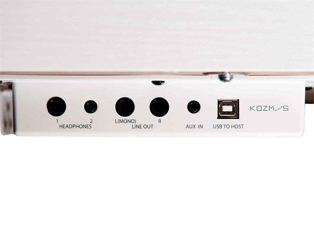 Złącza: MIDI Out, wejście na pedał, wyjście liniowe, wyjścia słuchawkowe 1/2, USB do komputera, wejście AUX, zasilanie DC