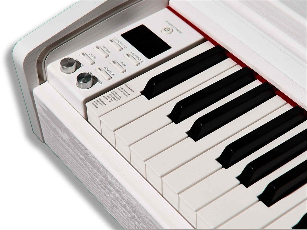 Artesia Pro A100 to instrument wyposażony w 88 ciężkich, dynamicznie czułych klawiszy, które wiernie odwzorowują dotyk akustycznego pianina, zapewniając realistyczne wrażenia podczas gry. Wielofunkcyjny ekran LCD ułatwia nawigację, pozwalając na szybkie dostosowanie ustawień i odkrywanie licznych funkcji pianina. Model A100 oferuje szeroki zakres opcji kontroli dźwięku, takich jak nakładanie brzmień (Overlap), podział klawiatury (Keyboard Split), transpozycja (Transpose), precyzyjne strojenie (Pitch Fine Tune), panoramowanie stereo (Stereo Pan) oraz zmiana oktawy (Octave Shift), co daje pełną swobodę twórczą zarówno podczas ćwiczeń, jak i występów.
