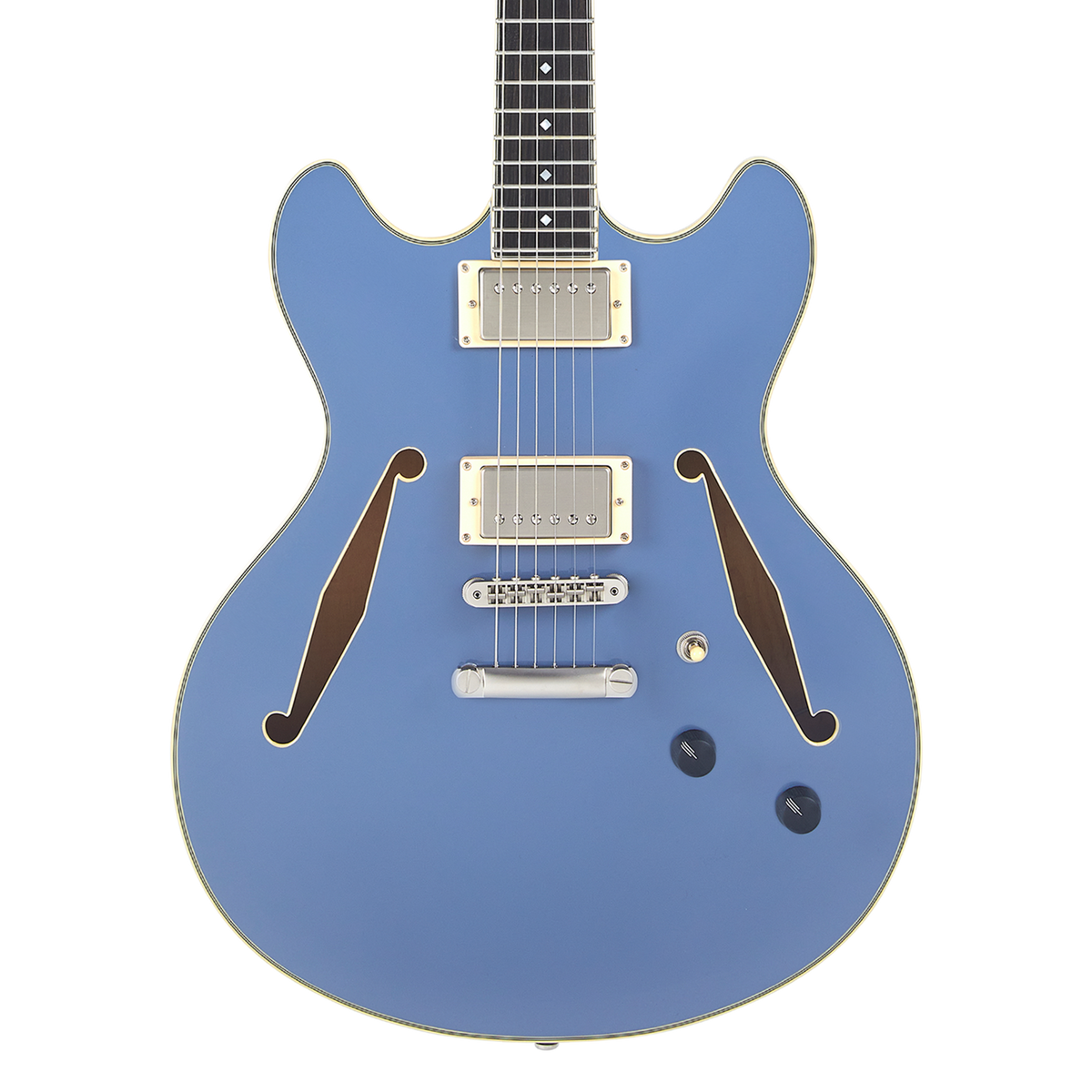 16-calowy semi-hollow z głębokimi wycięciami i lekki DC oferuje wyjątkową wszechstronność gatunkową. Brak pickguardu i inspirowane latami 30-tymi diamentowe otwory f dodają oldschoolowego uroku.