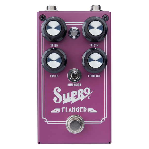 Supro Flanger 1309 to analogowy efekt typu flanger o pełnym sygnale stereo, zaprojektowany z myślą o gitarzystach poszukujących bogatego, przestrzennego brzmienia z wysokim headroomem. Dzięki zastosowaniu czterech układów MN3009 Bucket Brigade oraz innowacyjnej funkcji Dimension, pedał oferuje szeroką gamę modulacji – od subtelnych efektów po intensywne, psychodeliczne flangery.