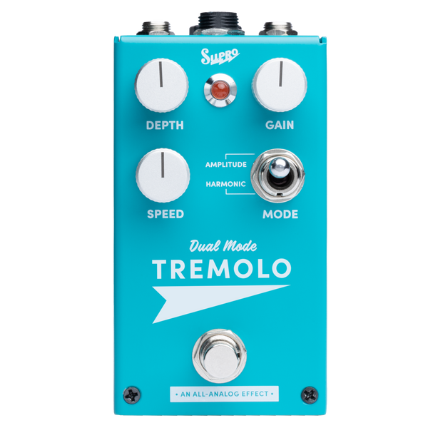 Supro Tremolo 1310 to analogowy efekt tremolo, który łączy klasyczne brzmienia lat 60. z nowoczesną funkcjonalnością. Dzięki zastosowaniu rzeczywistego transformatora wyjściowego oraz sekcji przedwzmacniacza i końcówki mocy, pedał oferuje autentyczne, lampowe brzmienie z możliwością wyboru między dwoma trybami modulacji: