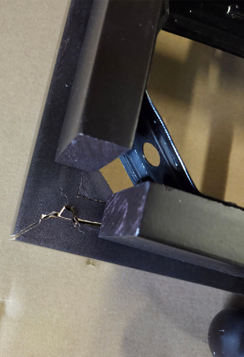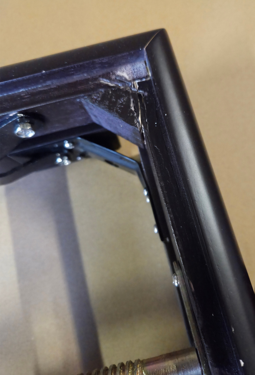 Ława ma pękniętą ramę. Rozchodzi się na bokach.