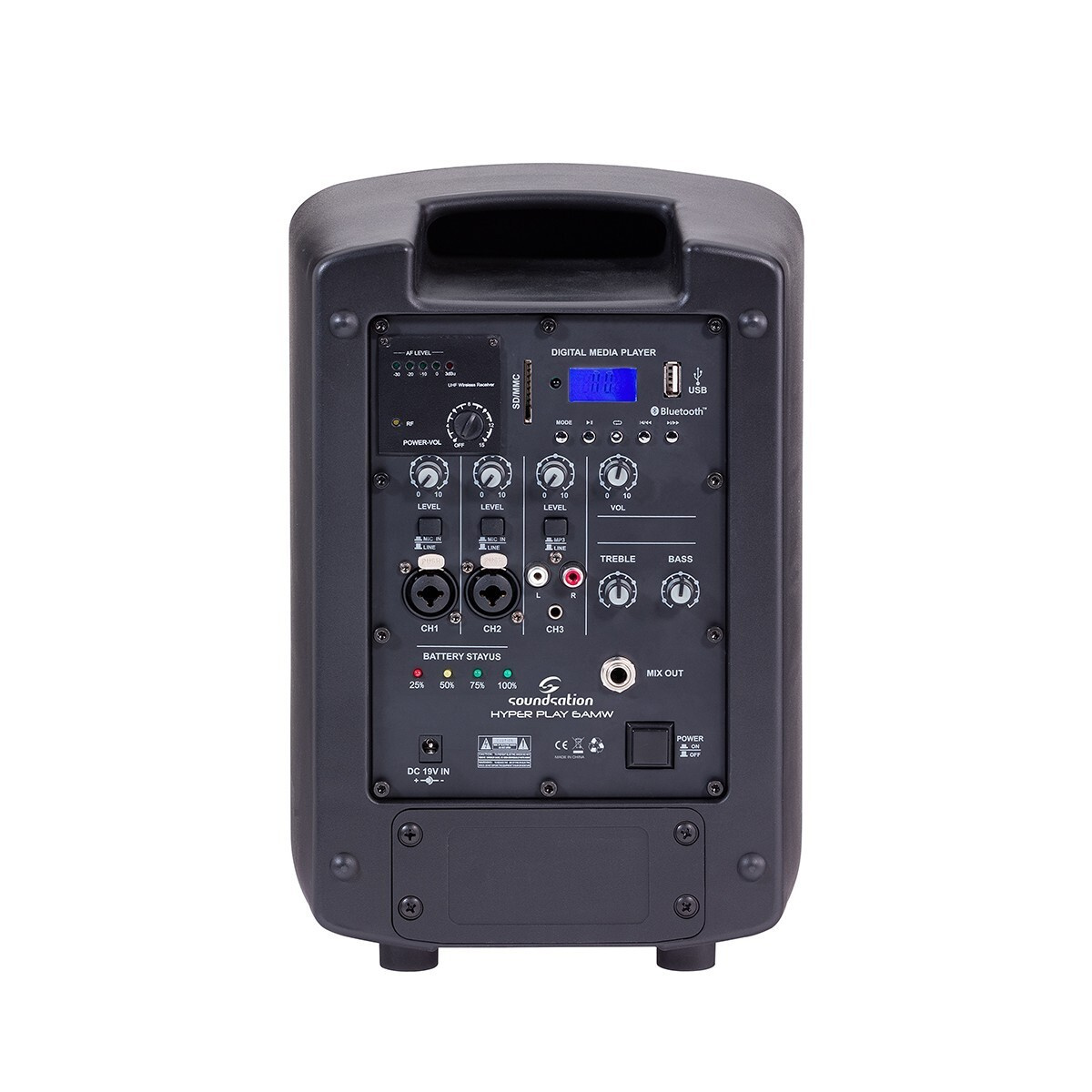 HYPER PLAY 6AMW to nowy, przenośny głośnik aktywny zasilany akumulatorem, wyposażony w głośnik niskotonowy 6,5”. Urządzenie posiada 4-kanałowy mikser, odtwarzacz MP3, złącza USB, karty SD, Bluetooth™, a także profesjonalny bezprzewodowy mikrofon UHF z nadajnikiem ręcznym.
