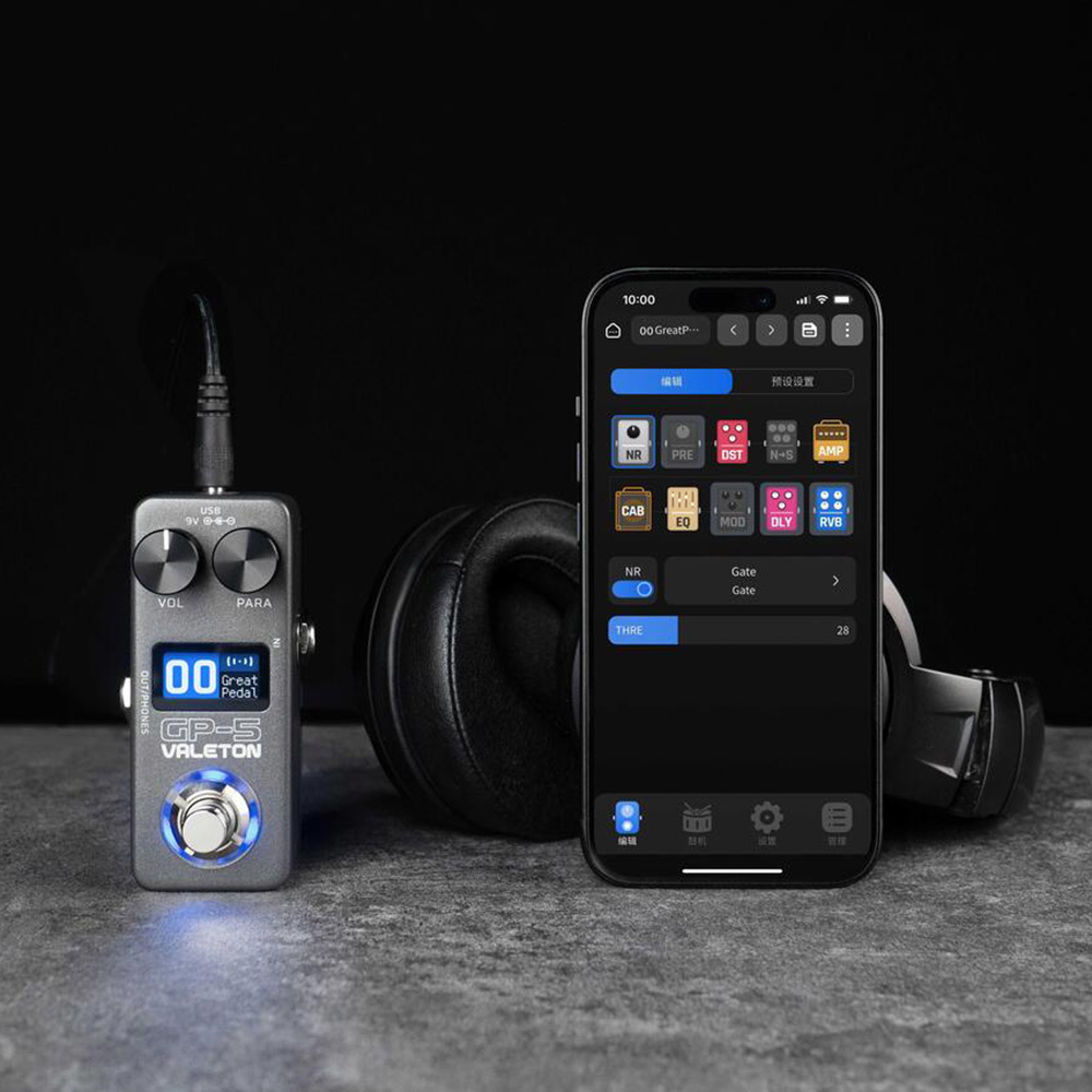 Valeton GP‑5 to ultrakompaktowy procesor multi-efektów w metalowej obudowie – stylowa jakość dźwięku w formacie, który zmieścisz w dłoni. Ważąc jedynie 237 g, oferuje niesamowite możliwości: