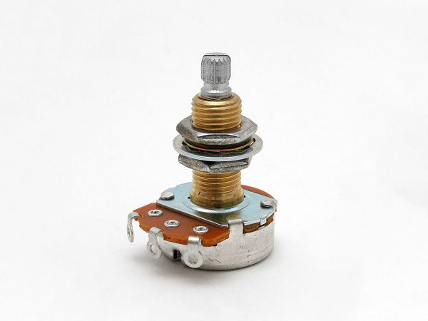 Potencjometr CTS 500k logarytmiczny o extra długim wałku, idealny do instrumentów takich jak Les Paul czy inne z grubymi drewnianymi topami. Obudowa ocynkowana zapewnia łatwe lutowanie, a gwintowany wałek z rowkiem oraz mosiężny gwint o wymiarach 20 x 10 mm gwarantują solidne połączenie. Średnica obudowy wynosi 24 mm.